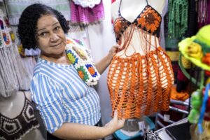 “Aqui tirei a minha carteirinha de artesã, comecei a participar das feiras e divulgar o meu trabalho nas redes sociais. Sou muito grata à Economia Solidária”, afirma. Ela também ressalta a importância da iniciativa para se conectar com outras artesãs, que formam uma rede de apoio.